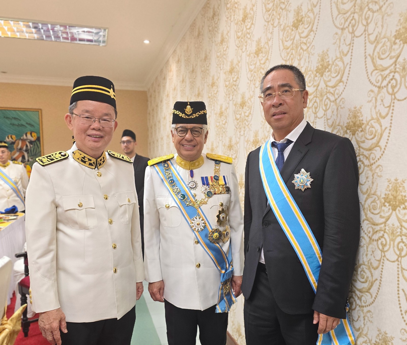 中心为槟城州元首阿末弗兹先生,,,,,,,左侧为槟城州首席部长曹观友先生